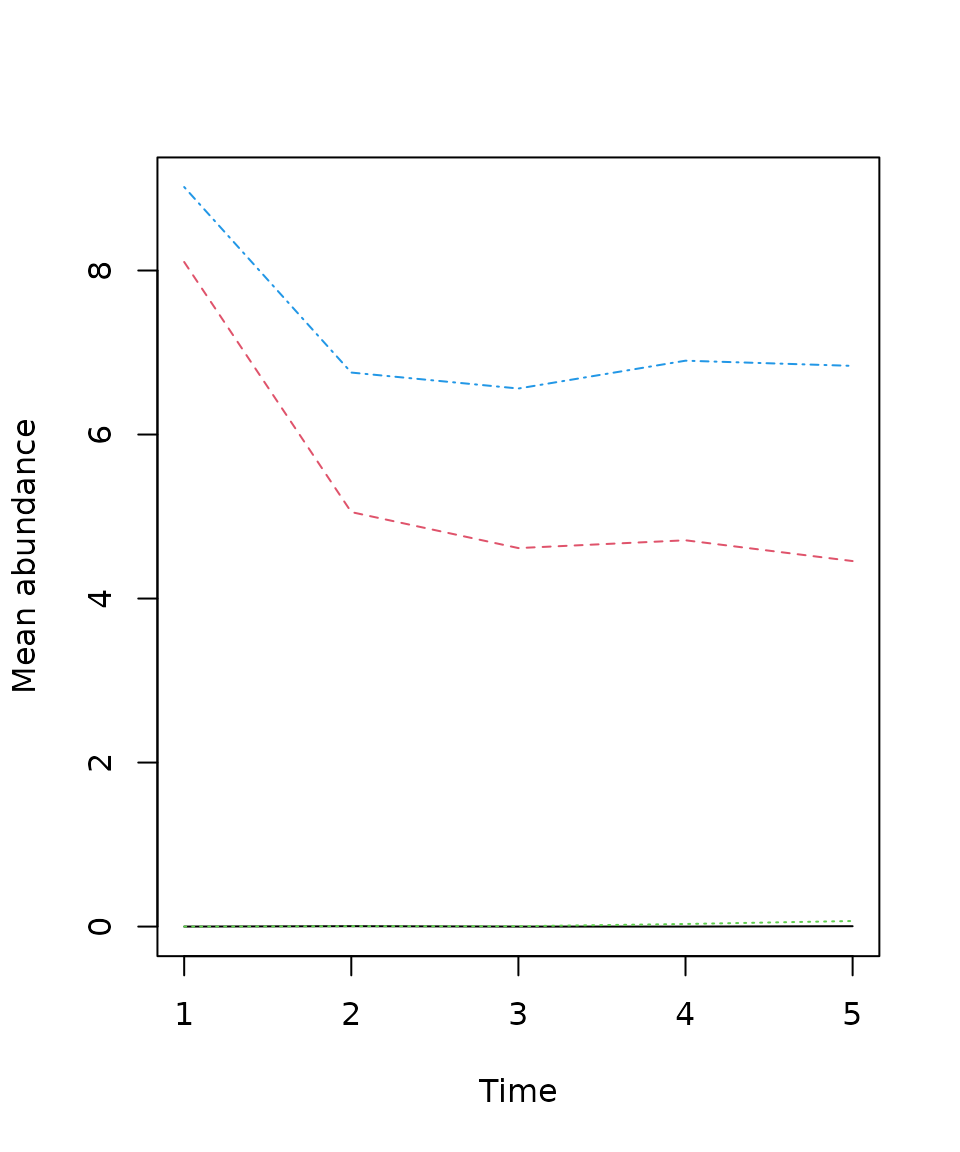Invisibly returns a matrix of the mean (and possibly transformed) abundance values for each species.